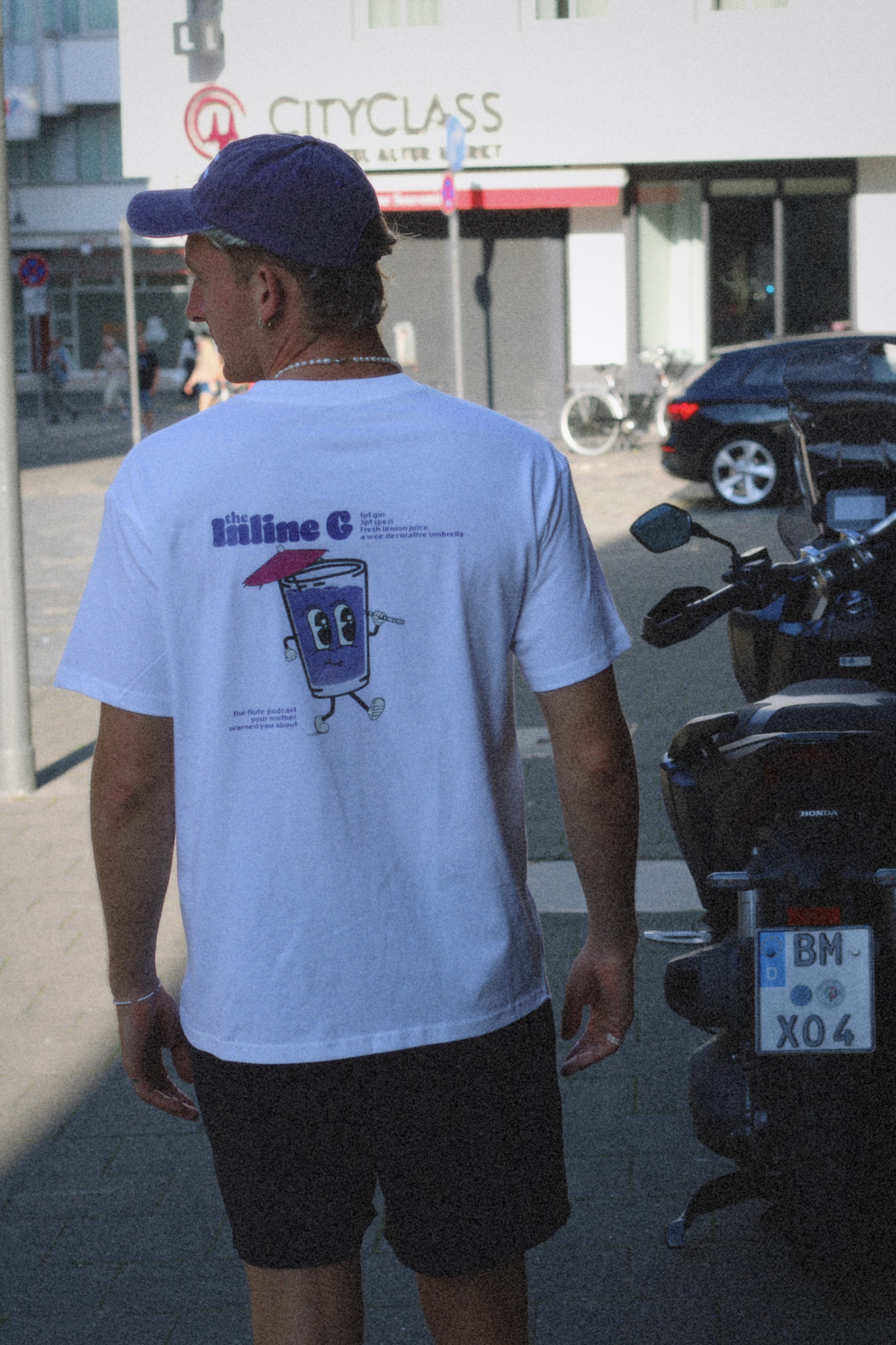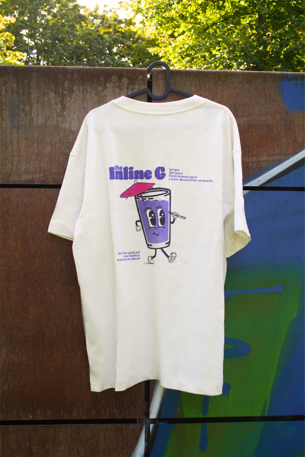Perfect for the practice room and the club, this stylish tee has the Inline G logo on the front and the cocktail design from episode 10 on the back.